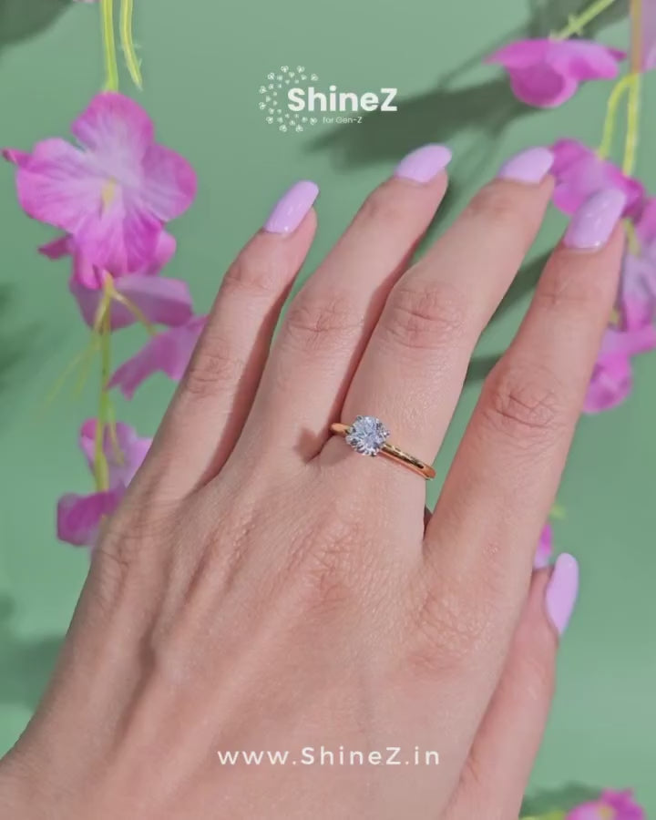 Ziora 1ct Round Solitaire Silver Ring | 22KT Gold Vermeil